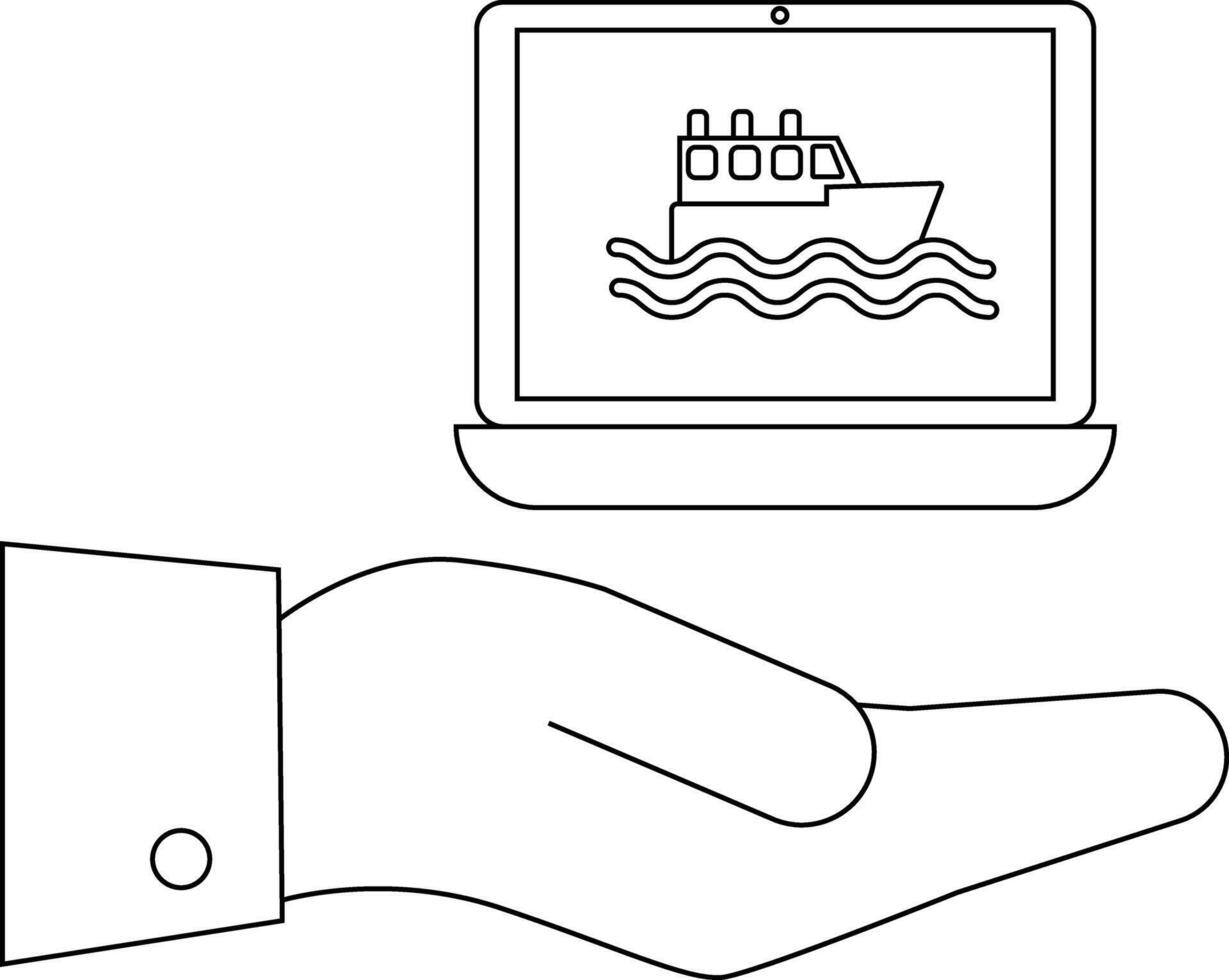 A laptop with a boat drawing on screen rests on an open hand in the image Pro Vector