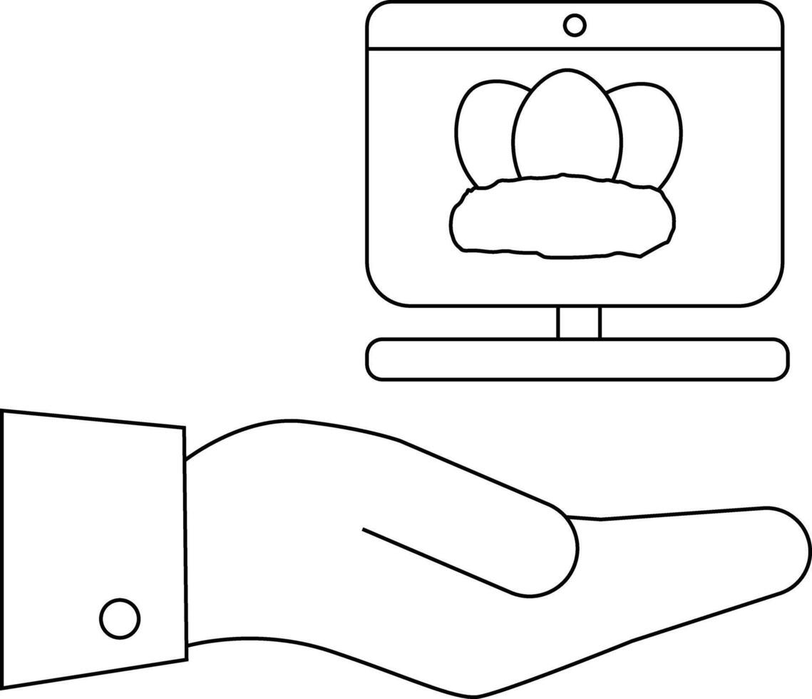A hand holds a computer screen displaying eggs in a nest Pro Vector