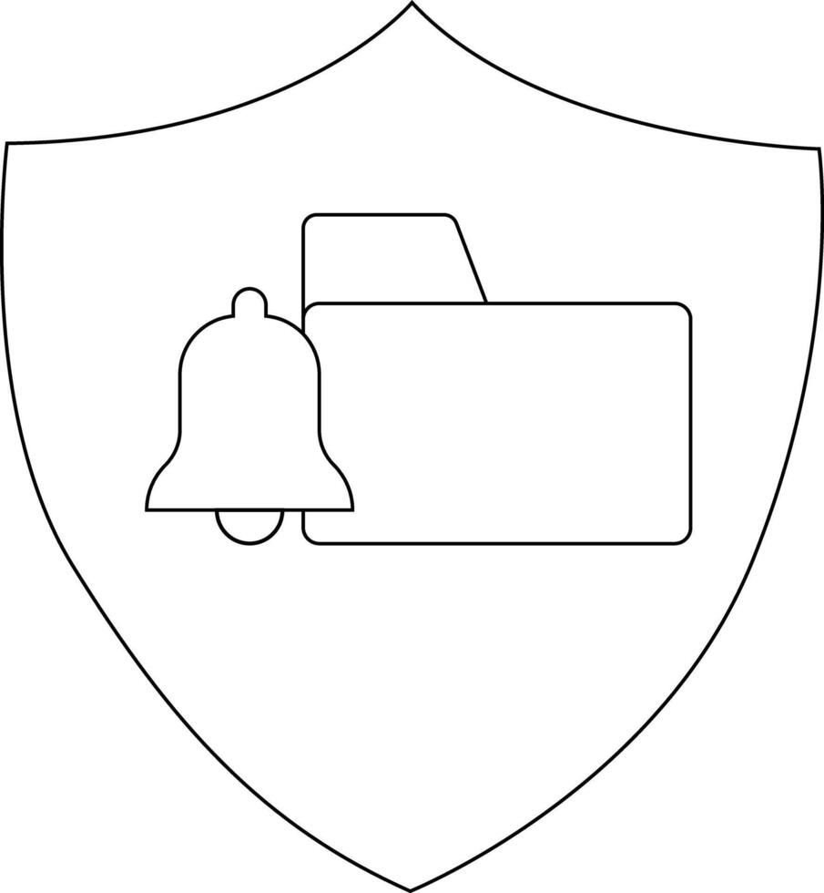 Shieldshaped icon containing a folder symbol next to a notification bell Pro Vector