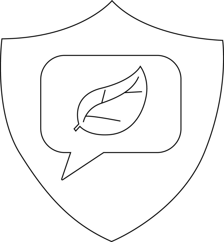 A shield outline contains a speech bubble with a leaf icon inside it Pro Vector