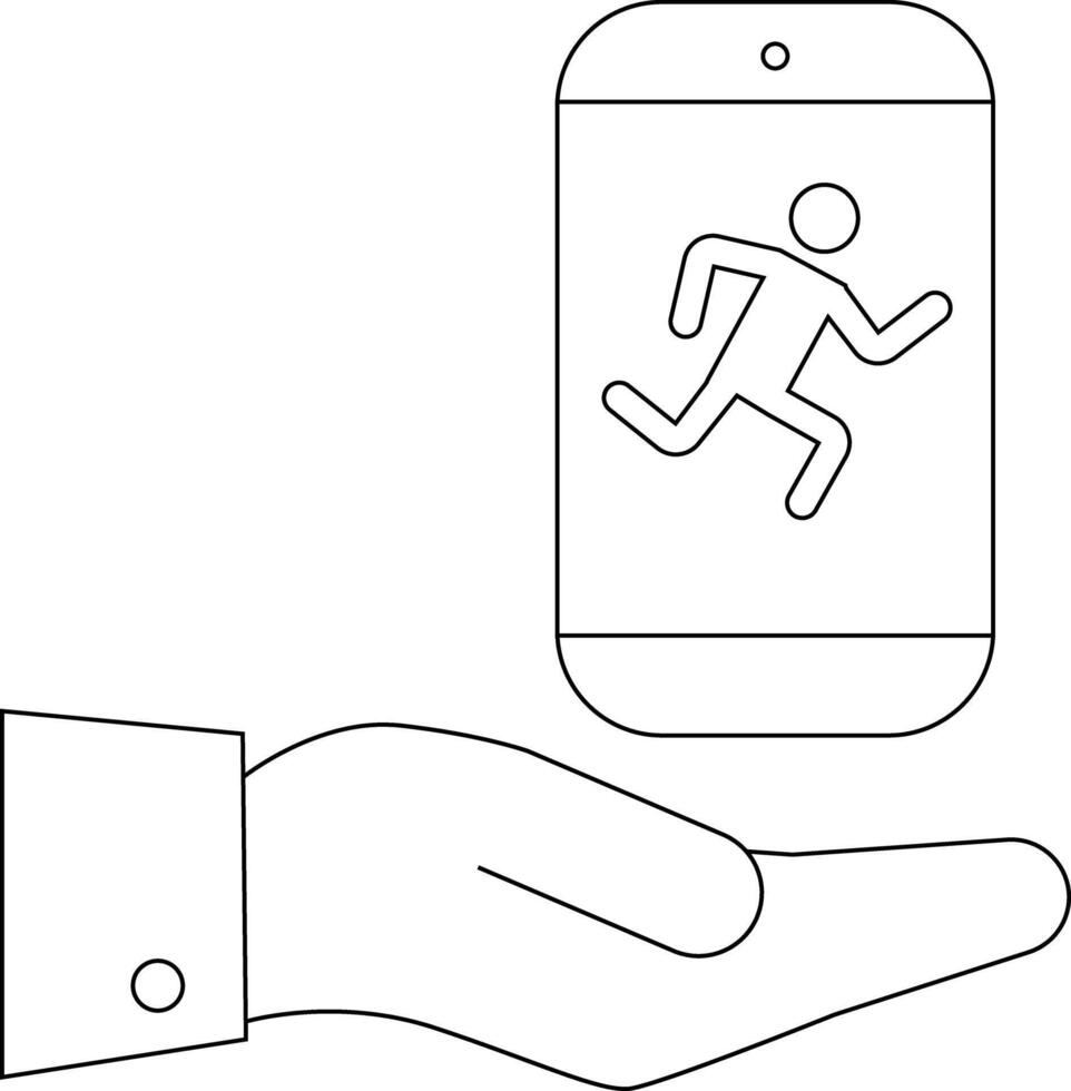A line drawing depicts a hand holding a phone displaying a running figure Pro Vector