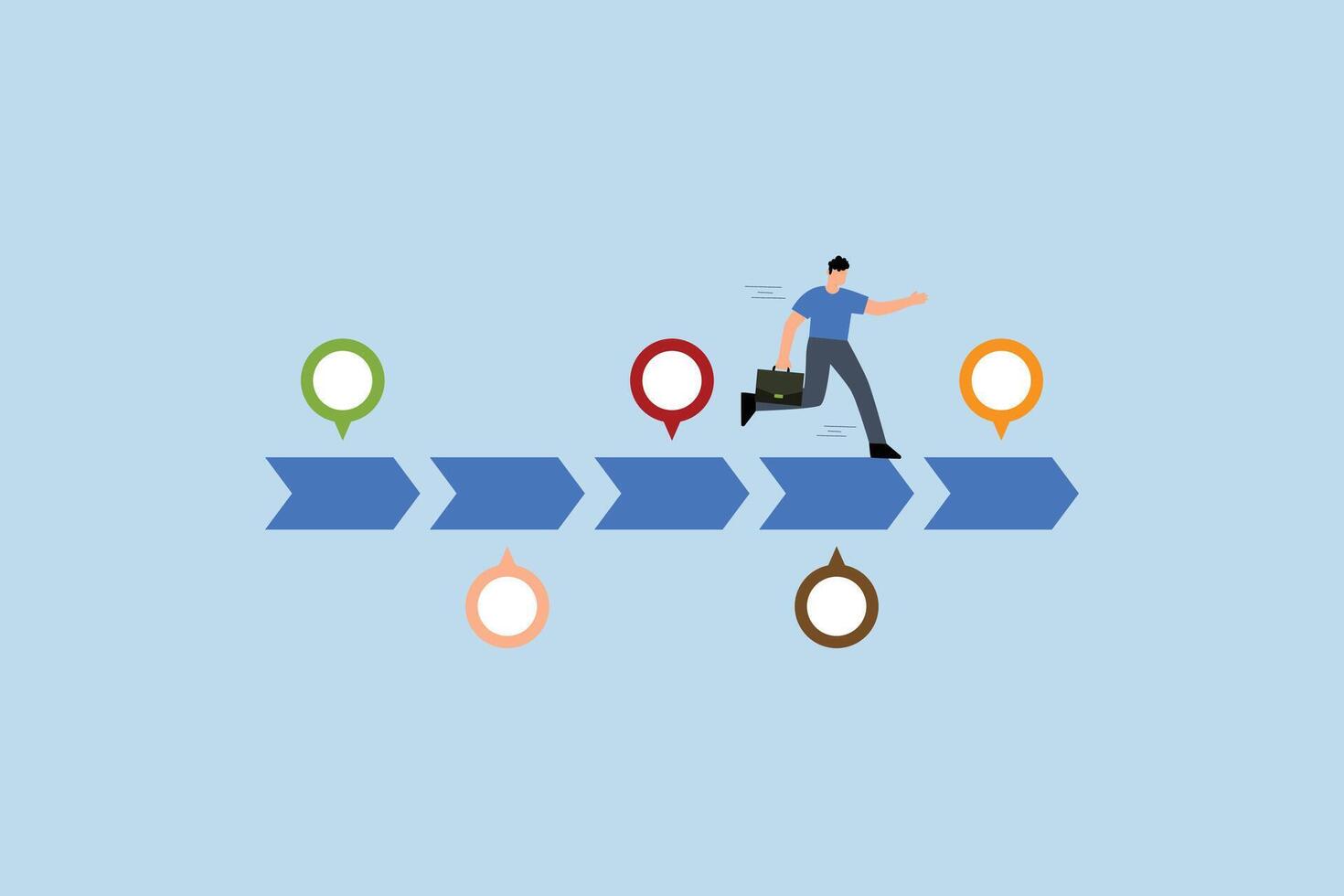 Timeline project planning, businessman running on project timeline milestones Pro Vector