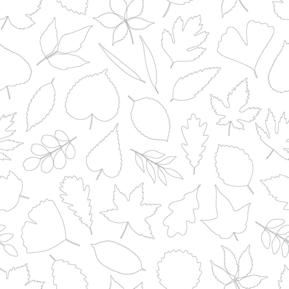 Seamless pattern with black line art leaves on white background, contour leaf of maple, linden, poplar, ginkgo, and others. Print for textile, package, paper. Illustration in minimal style Pro Vector