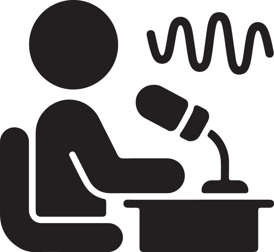 A person sitting at a desk with a microphone and a microphone Pro Vector
