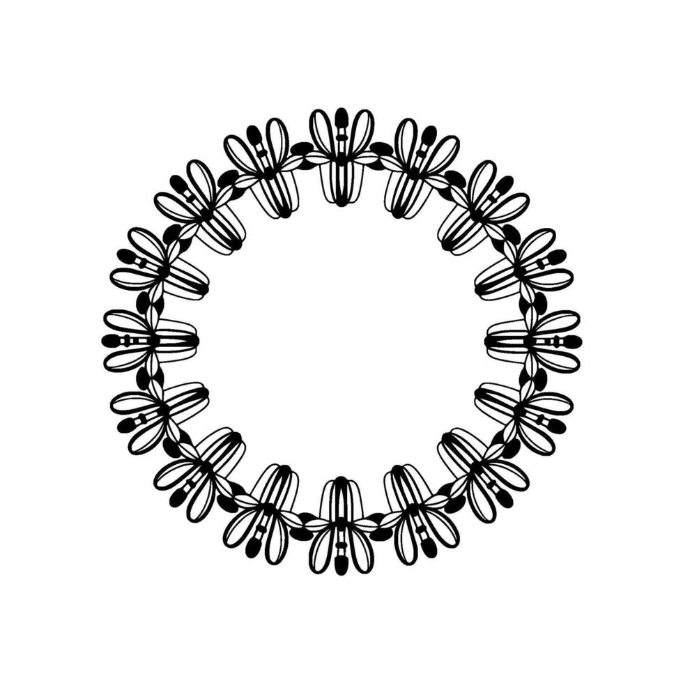 A precisely rendered abstract floral circular pattern featuring repeating petallike motifs arranged in a symmetrical mandalalike composition isolated Pro Vector