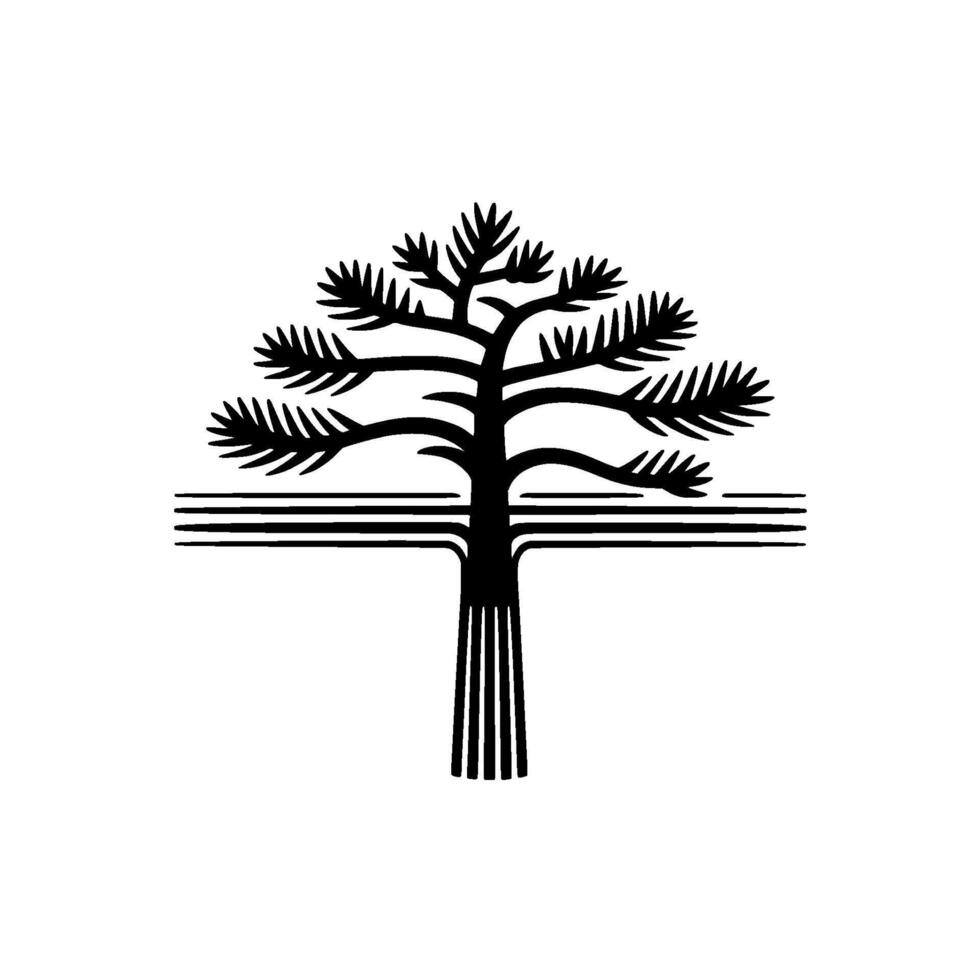 Minimalist silhouette of a stylized coniferous tree with parallel horizontal lines emanating from its trunk vector
