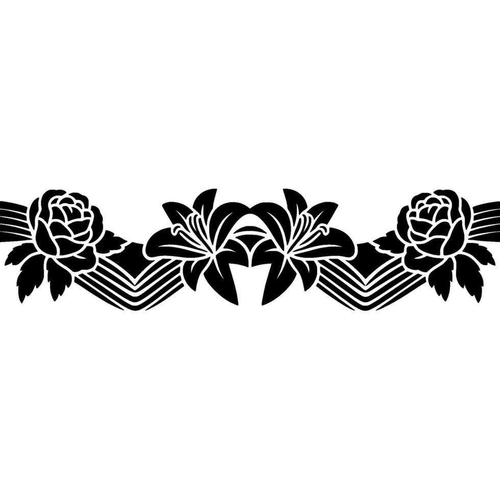 Elegant silhouette border featuring symmetrical stylized roses and lilies with layered chevron patterns Pro Vector
