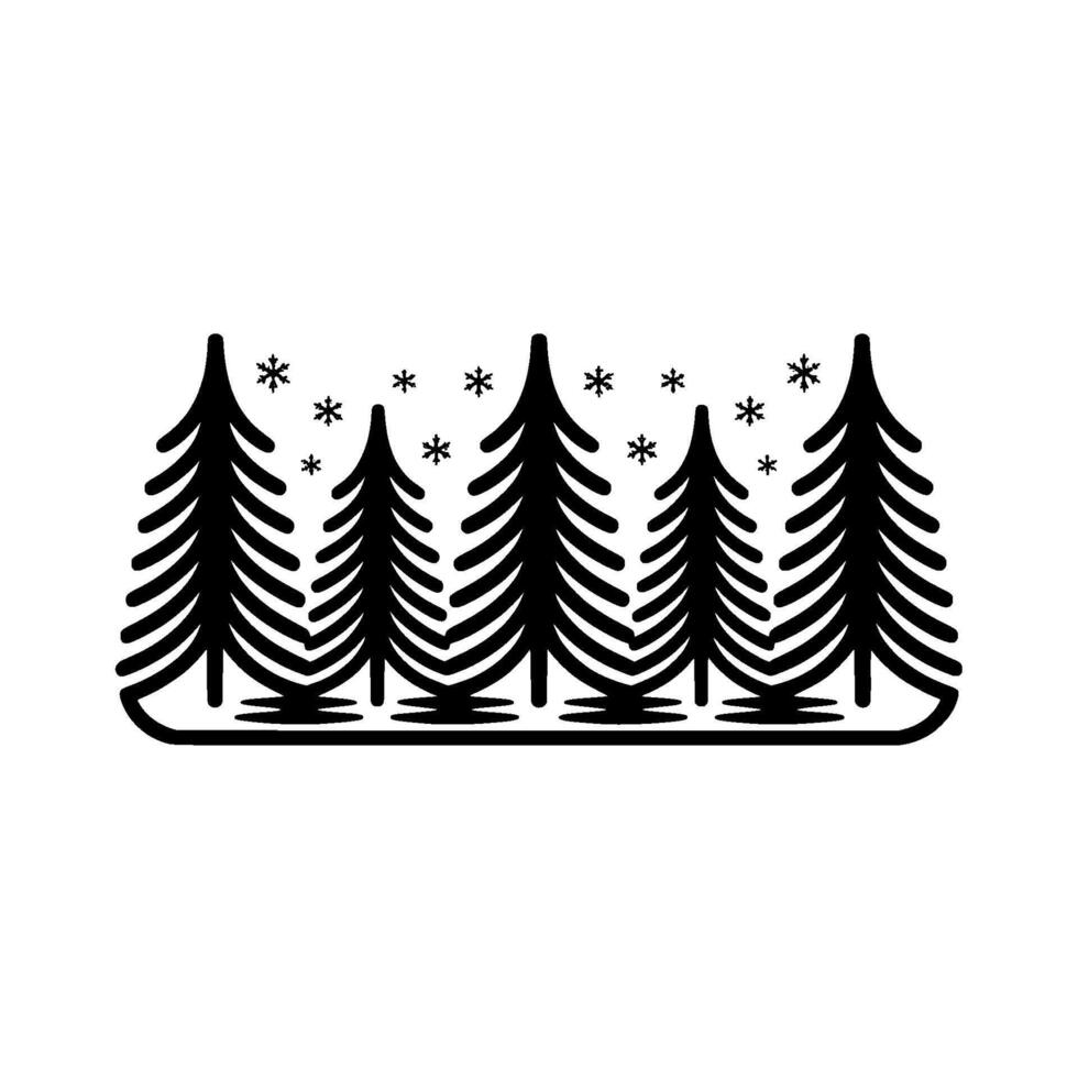 A minimalist line art illustration featuring a row of stylized pine trees adorned with falling snowflakes Pro Vector