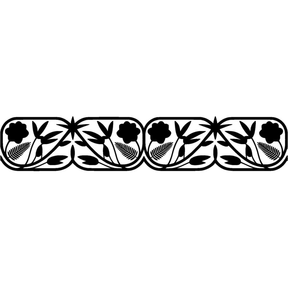 silhouette of an elegant floral border pattern featuring stylized flowers and fern fronds contained within rounded rectangular frames Pro Vector
