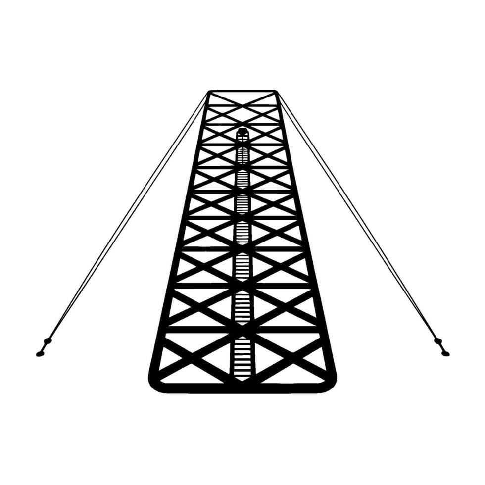 Minimalist abstract representation of a towering steel lattice suspension bridge structure with angled support cables Pro Vector