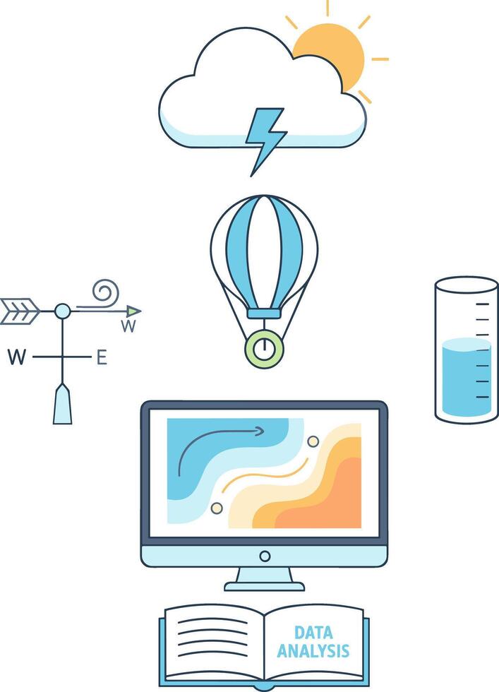 Conceptual illustration of meteorology and weather data analysis tools. Pro Vector
