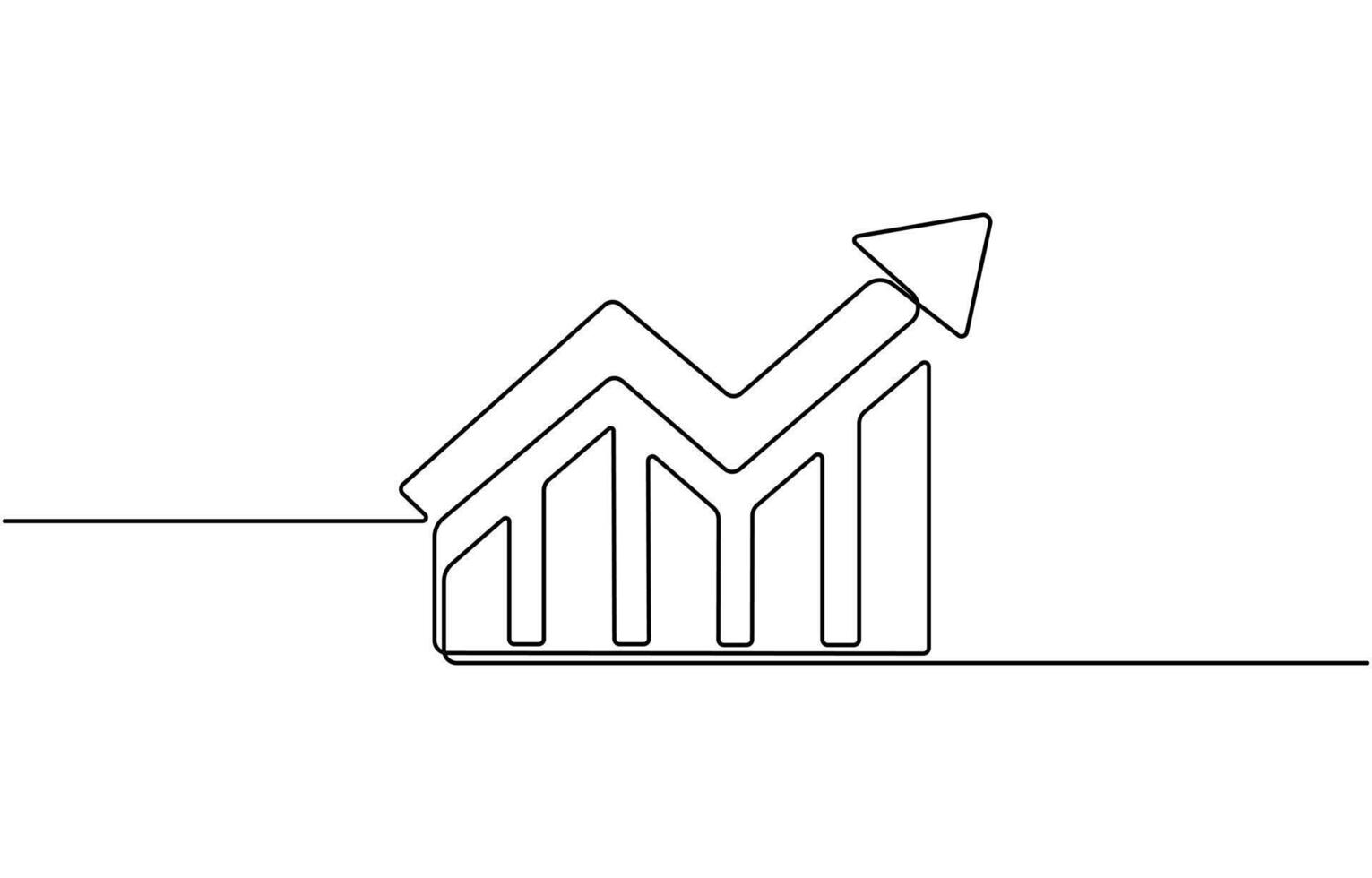 Continuous one line drawing of Growing line graph icon showing upward trend isolated on white background Pro Vector
