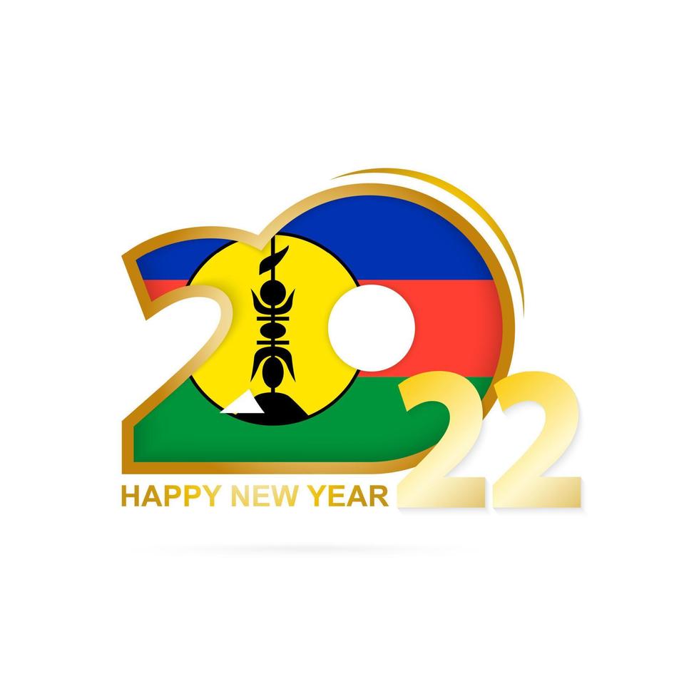 Year 2022 with New Caledonia Flag pattern. Happy New Year Design. Pro Vector