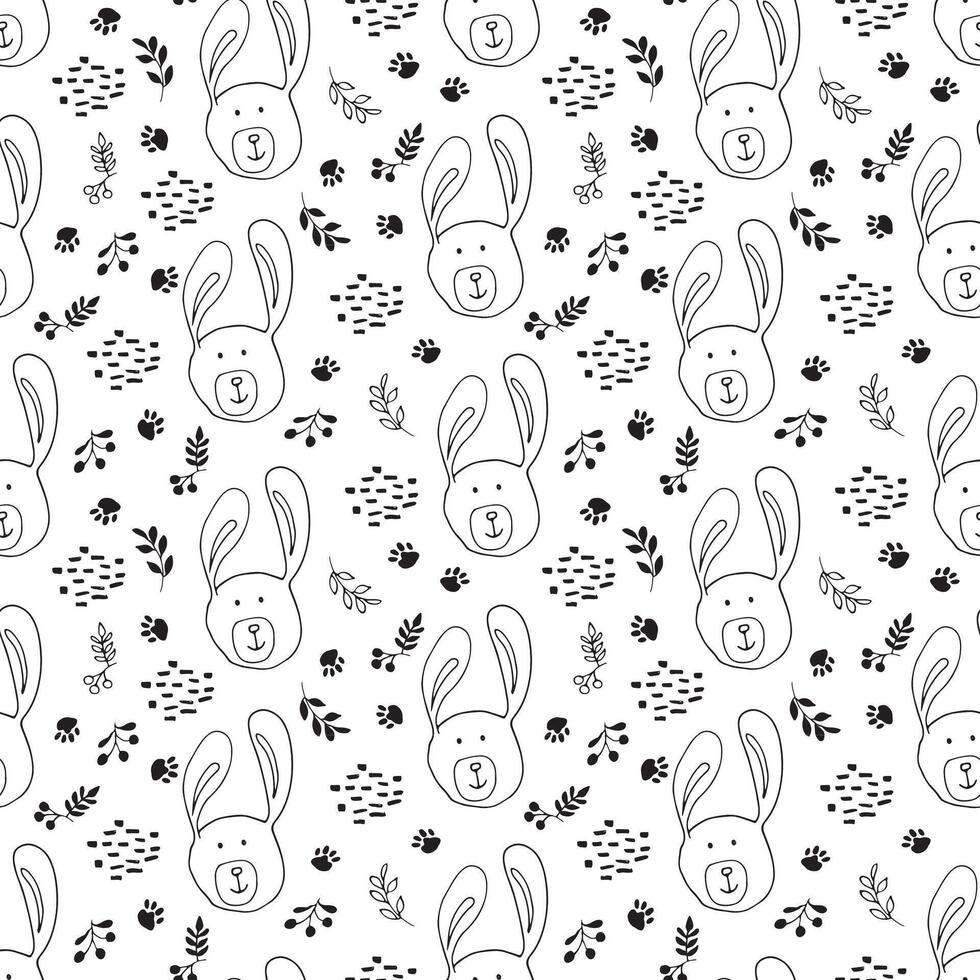 Repeating cartoon rabbit design with forest elements Pro Vector