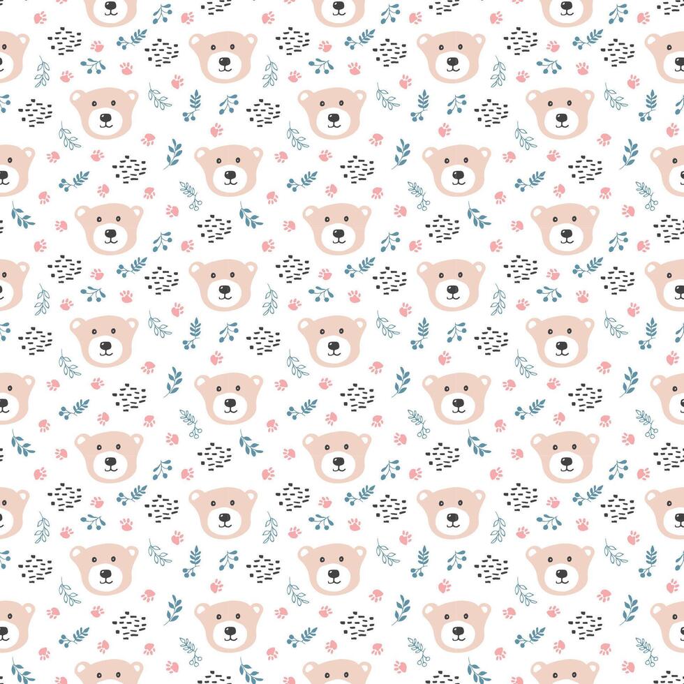 Repeating pattern of playful cartoon bears in forest Pro Vector