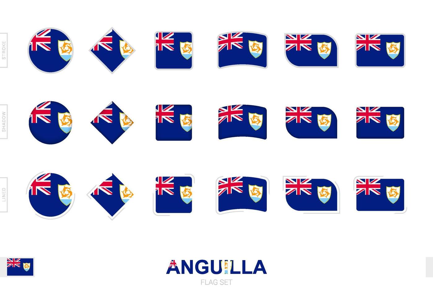 Anguilla flag set, simple flags of Anguilla with three different effects. Pro Vector
