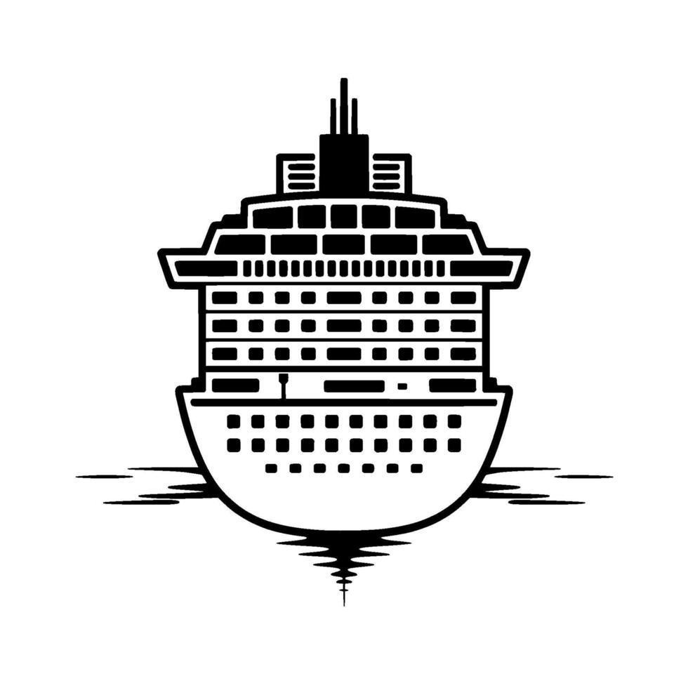 Minimalist illustration of a large modern passenger cruise ship with multiple decks and balconies reflected Pro Vector