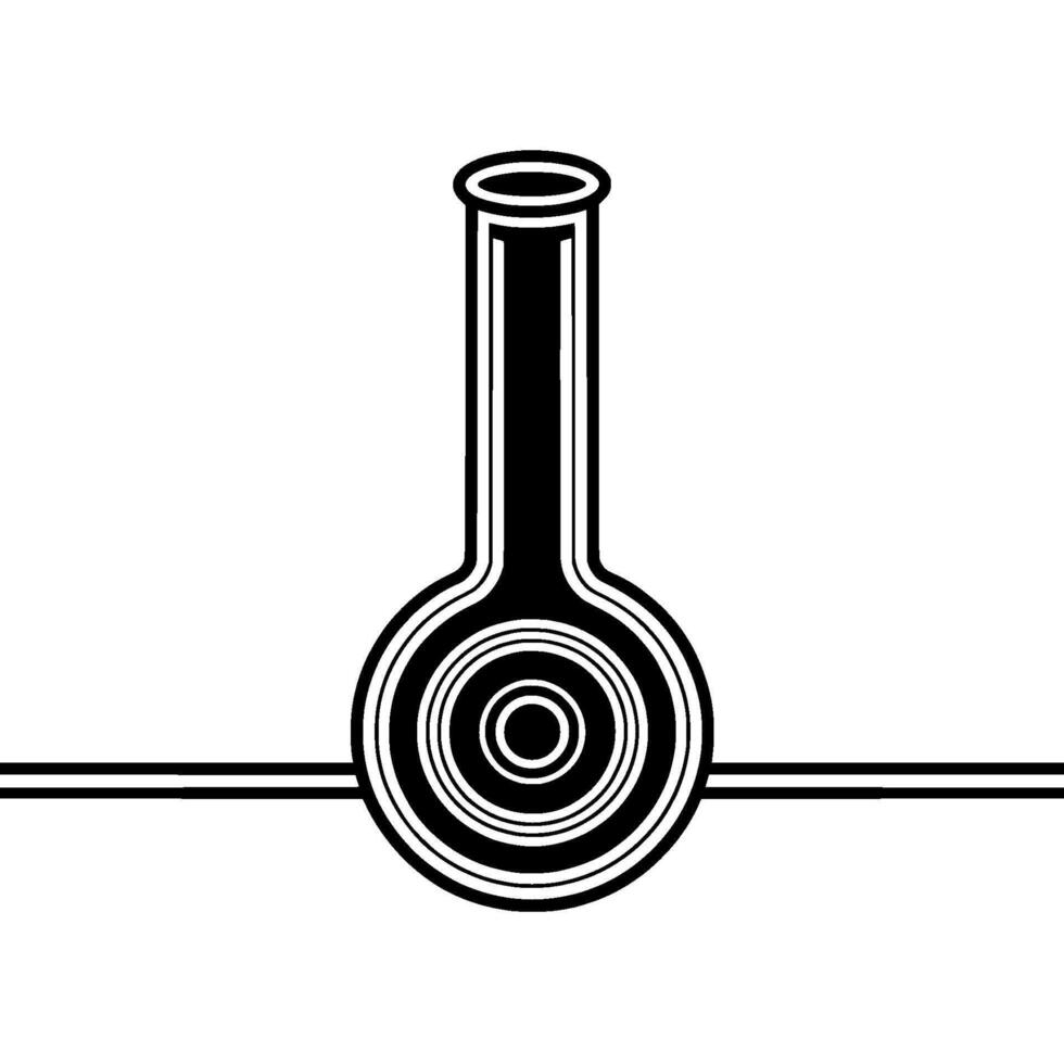 A stylized illustration of a rounded bottom laboratory flask with concentric circles and a horizontal line representing scientific or chemical experimentation Pro Vector