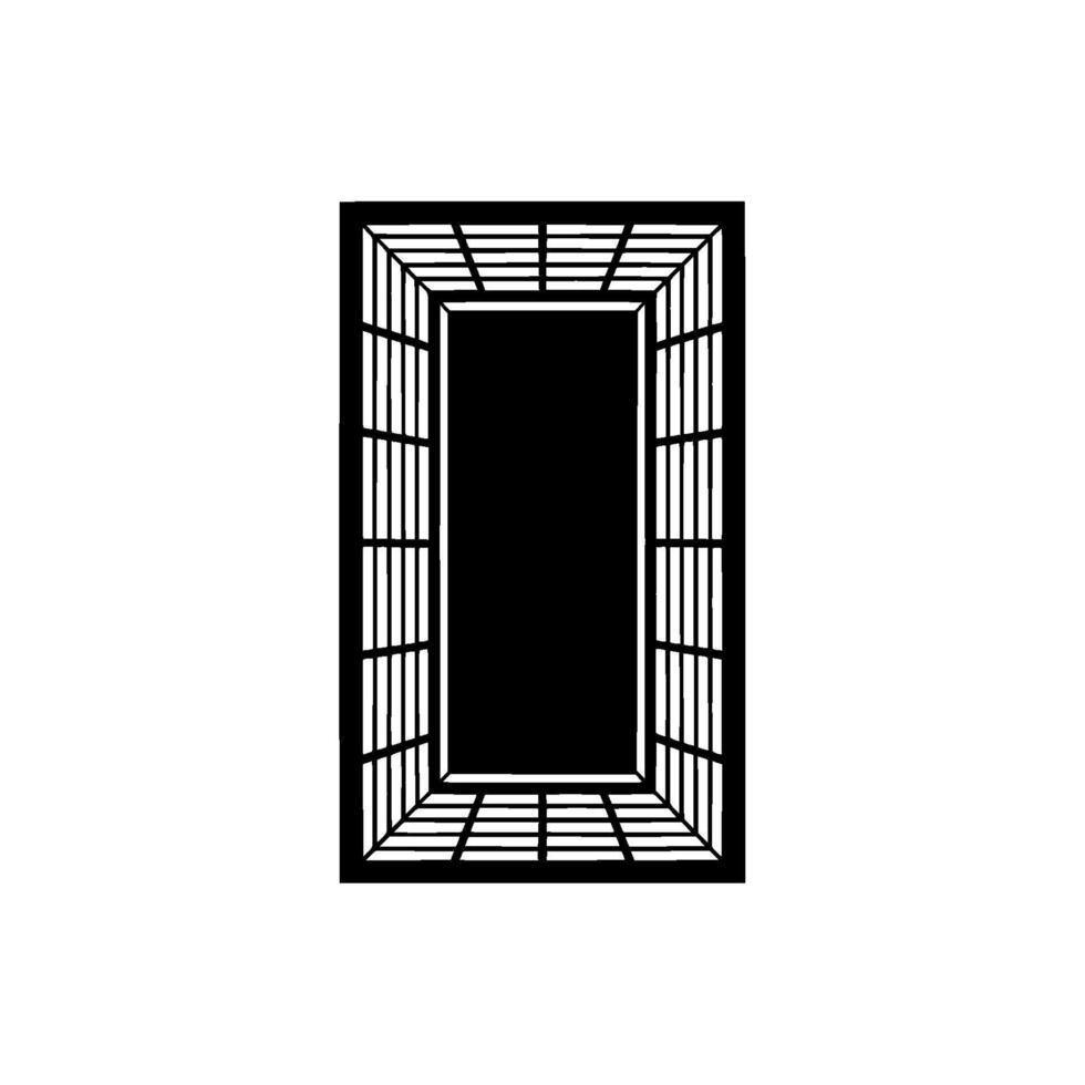A stark minimalist open doorway with thin vertical and horizontal bars creating a perspective view Pro Vector