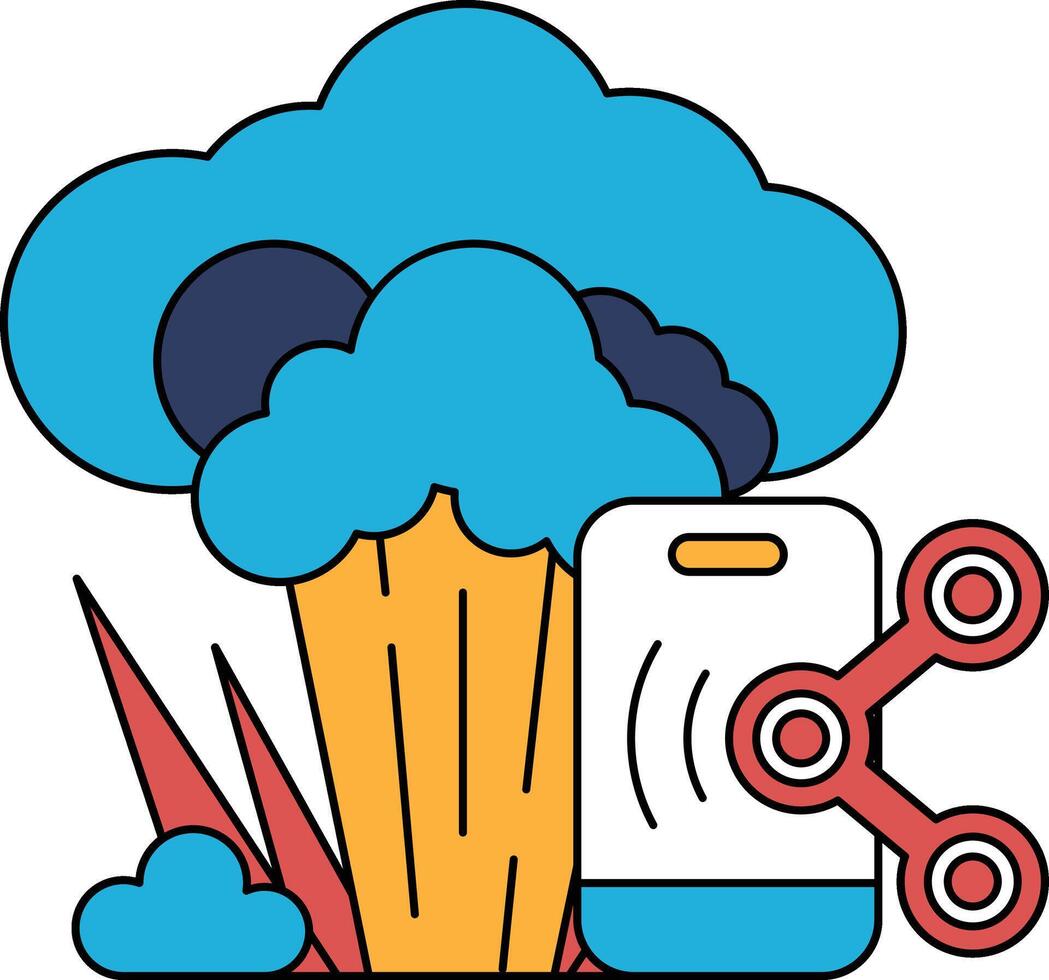 A drawing of a cell phone and a pair of scissors with a cloud in the background Pro Vector