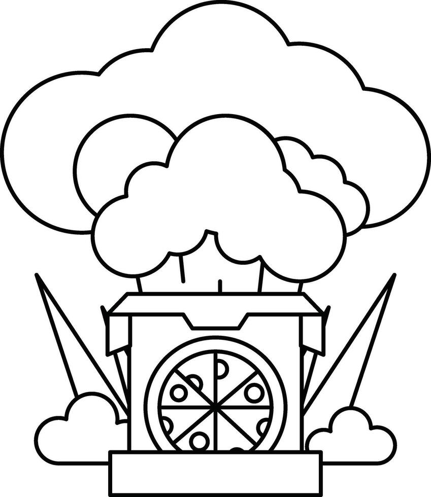 A box with a pizza inside is surrounded by clouds Pro Vector