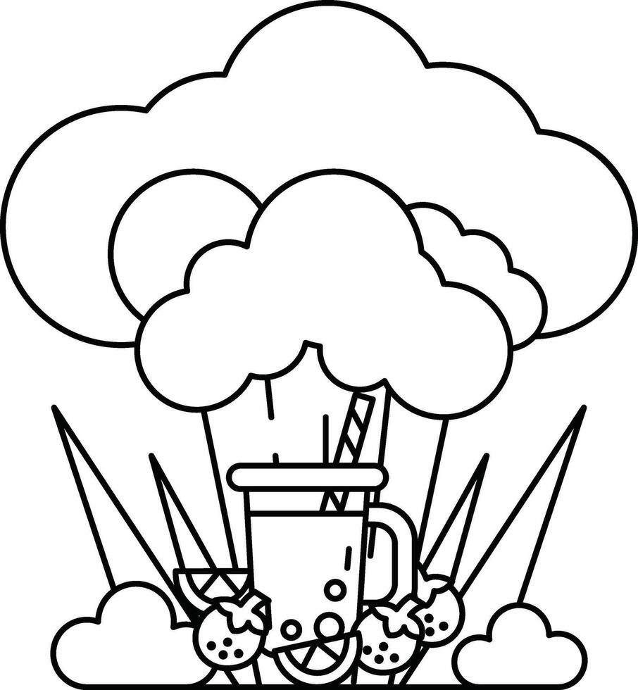 A drawing of a cloud with a cup of ice cream and a straw in it Pro Vector