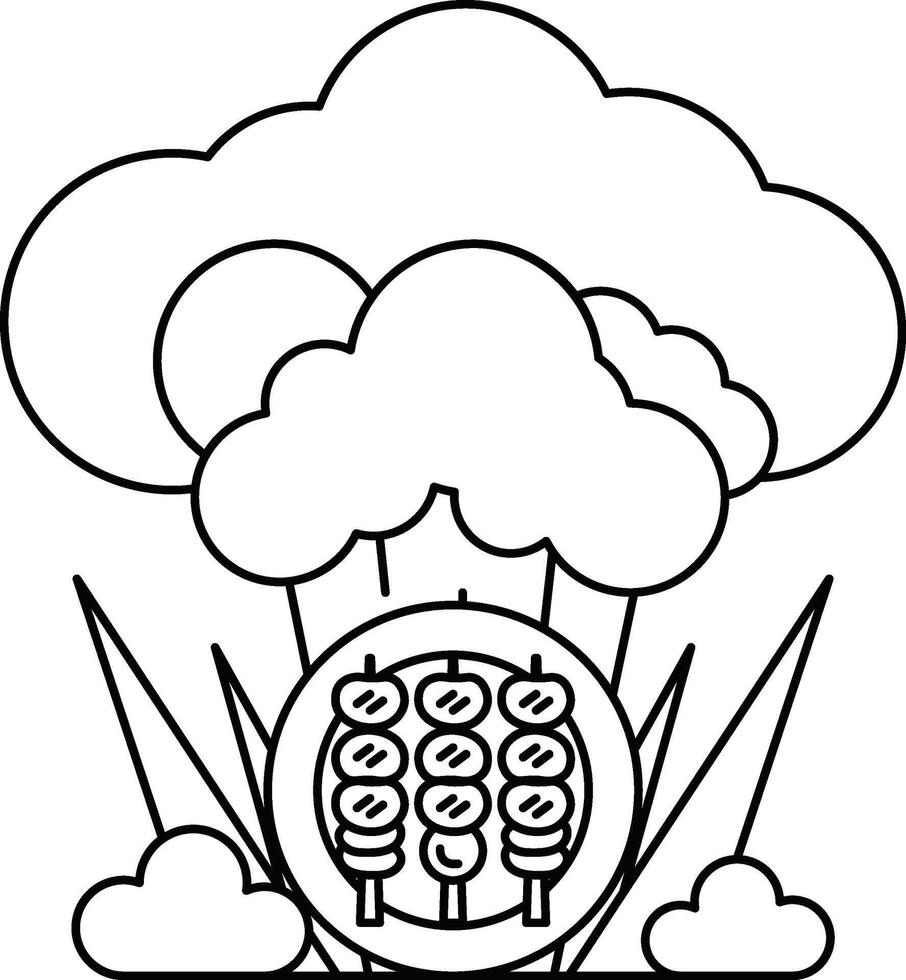 A plate of food with skewers on it is surrounded by clouds Pro Vector