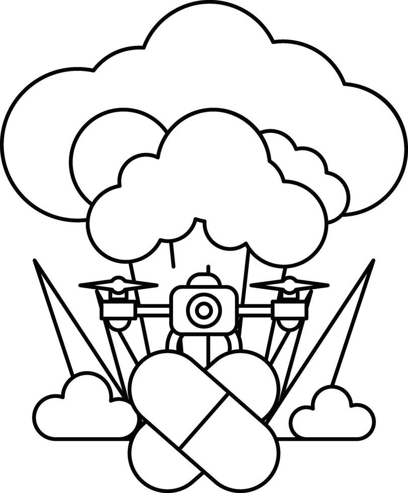 A cartoon of a camera and a pill bottle with a cloud in the background Pro Vector