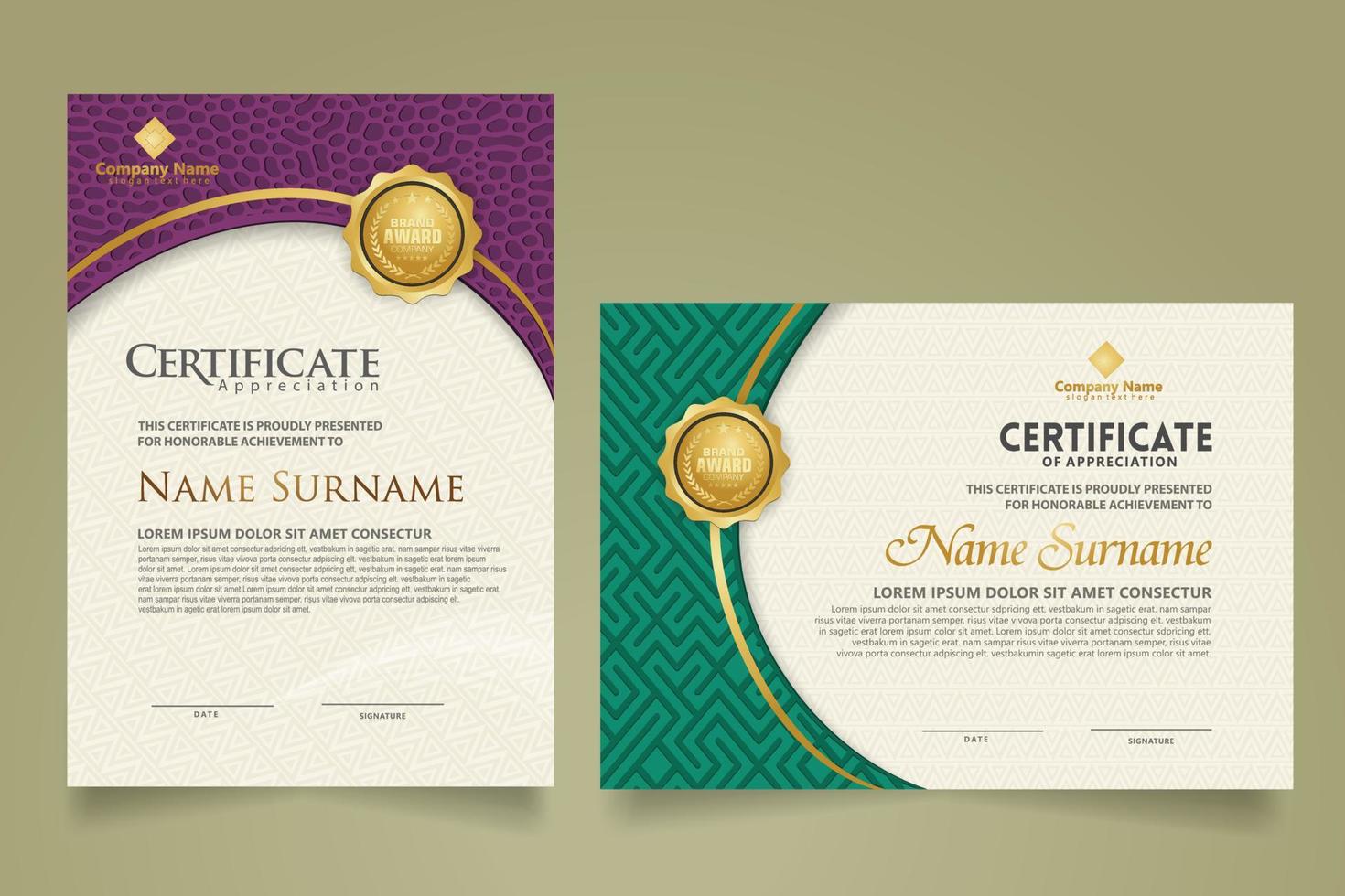 Set modern certificate template with dynamic and futuristic texture on curve ornament and modern pattern background Pro Vector