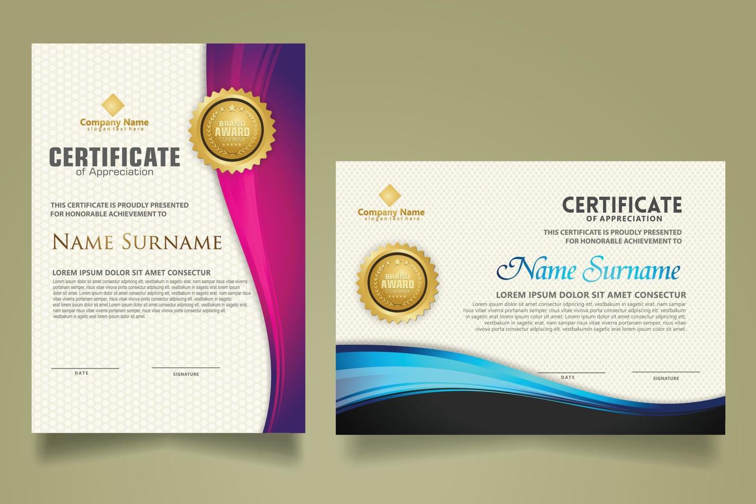 set modern certificate template with flow lines ornament and modern pattern background. Pro Vector
