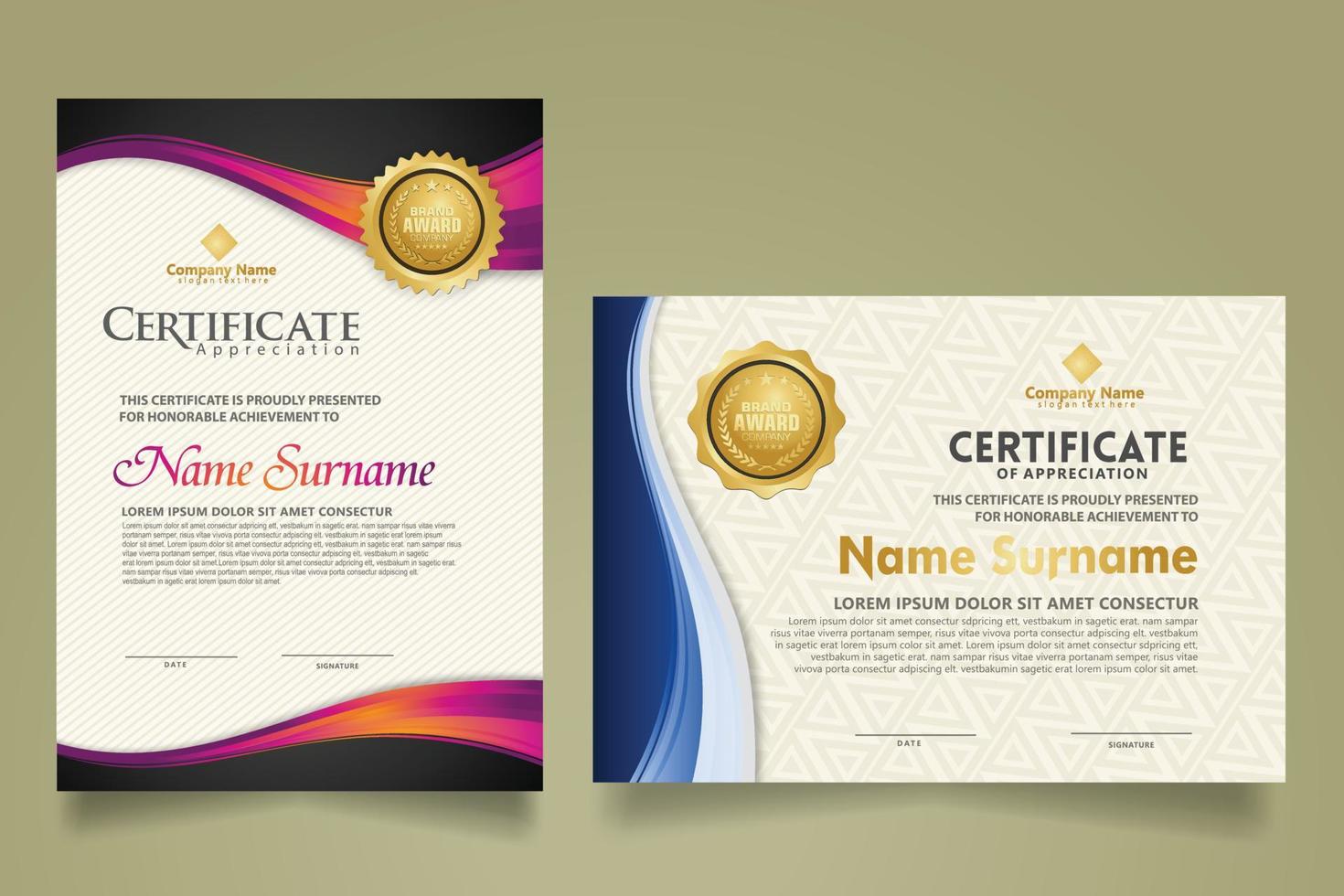 set modern certificate template with flow lines ornament and modern pattern background. Pro Vector