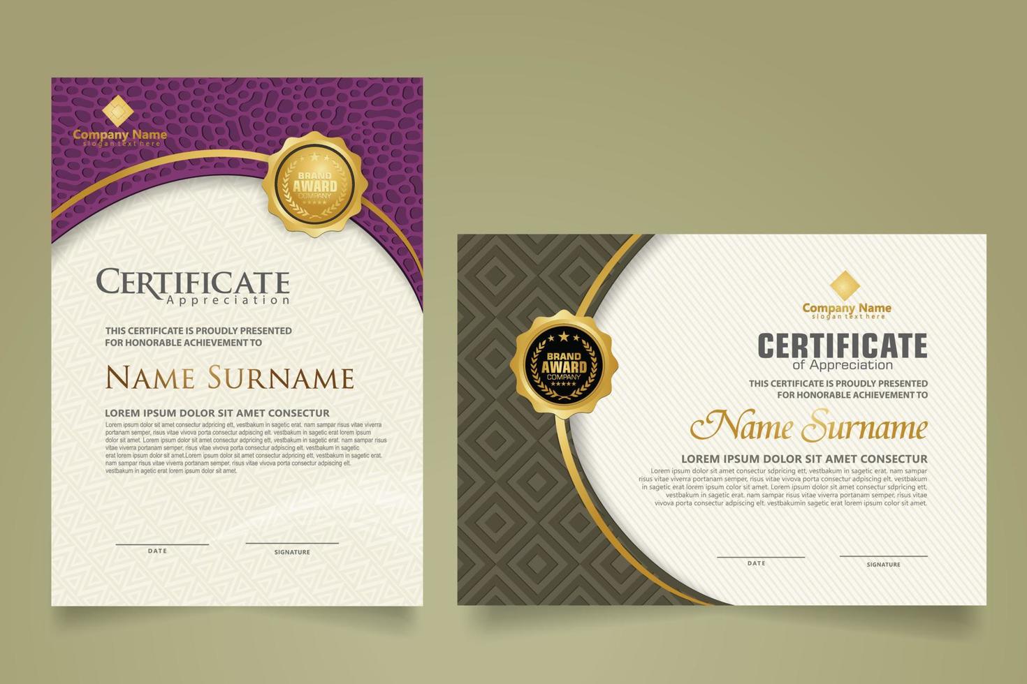 Set modern certificate template with dynamic and futuristic texture on curve ornament and modern pattern background Pro Vector