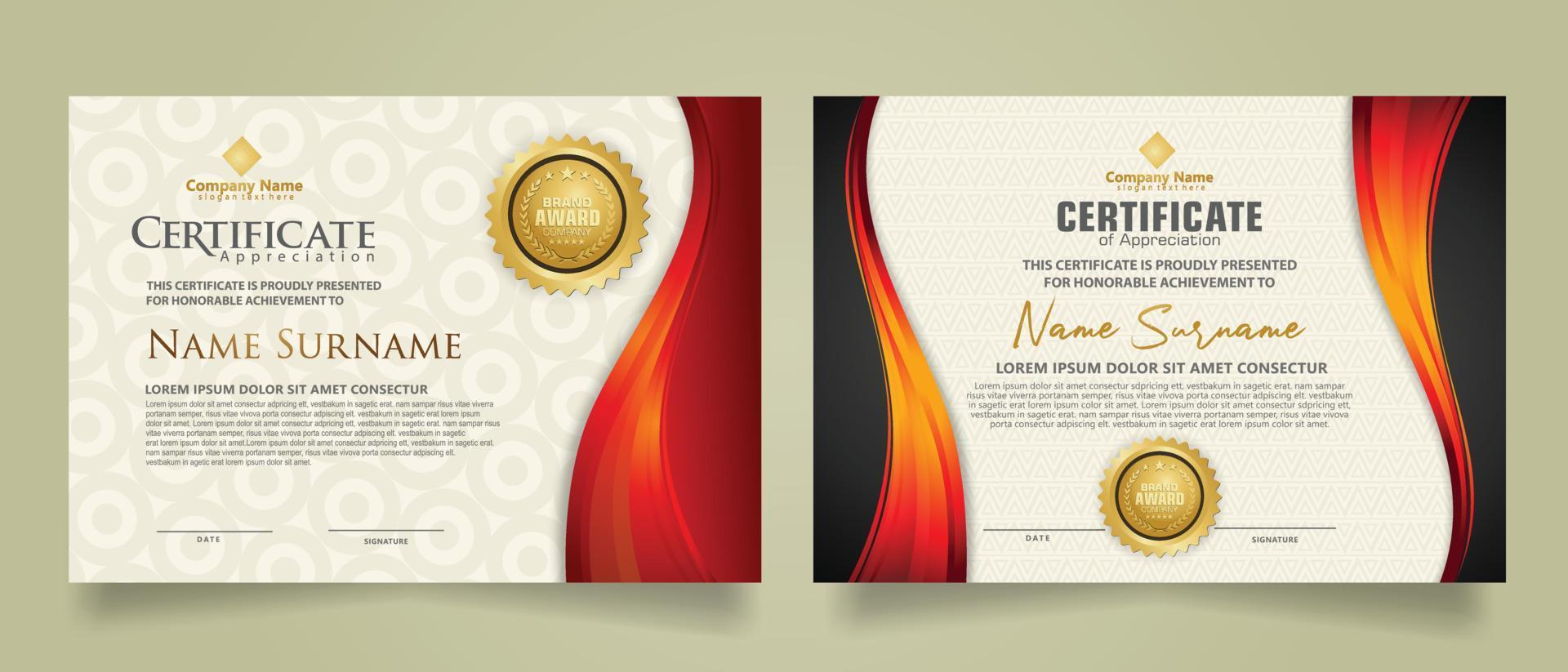set modern certificate template with flow lines ornament and modern pattern background. Pro Vector