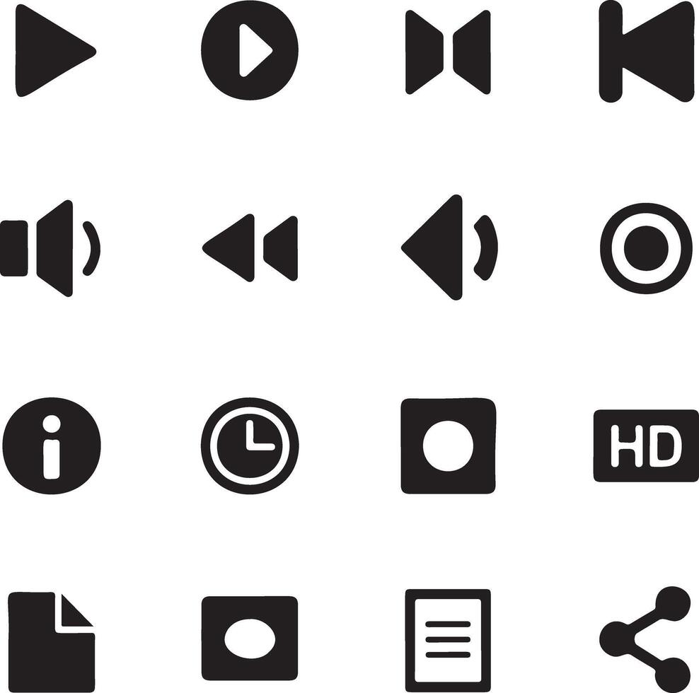 Set of transparent and white multimedia and interface icons on a white background Pro Vector