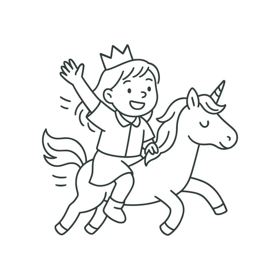 Child riding unicorn with joy and excitement in a happy pose Pro Vector