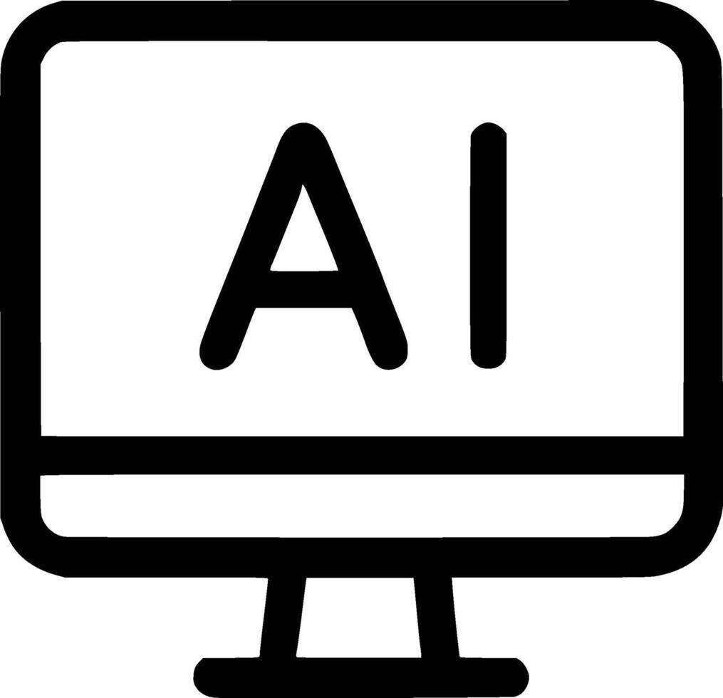 Simple Line Style Computer Screen AI Technology Artificial Intelligence Icon Pro Vector