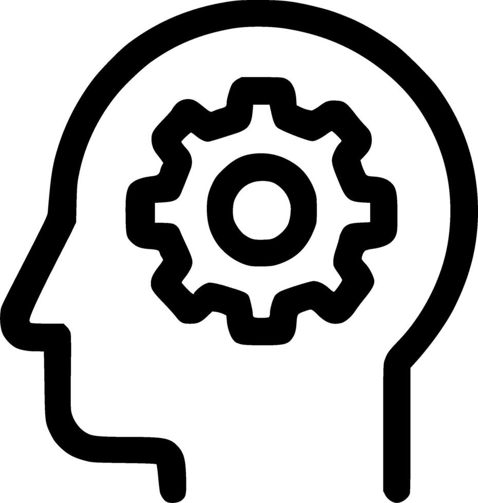 Outline Simple Head with Gear Inside Brainstorming Idea Concept Icon Pro Vector