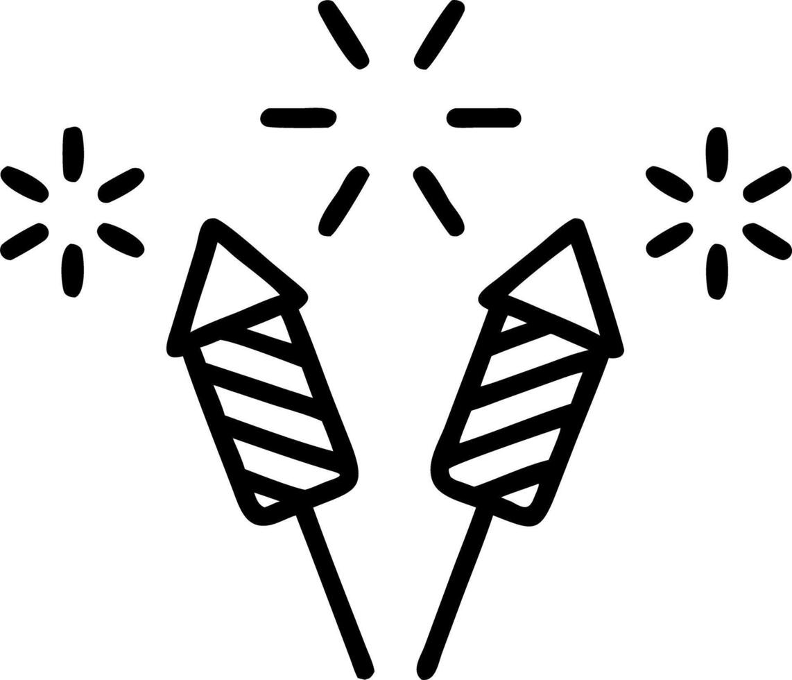 Simple line art icon of two firework rockets exploding. Pro Vector
