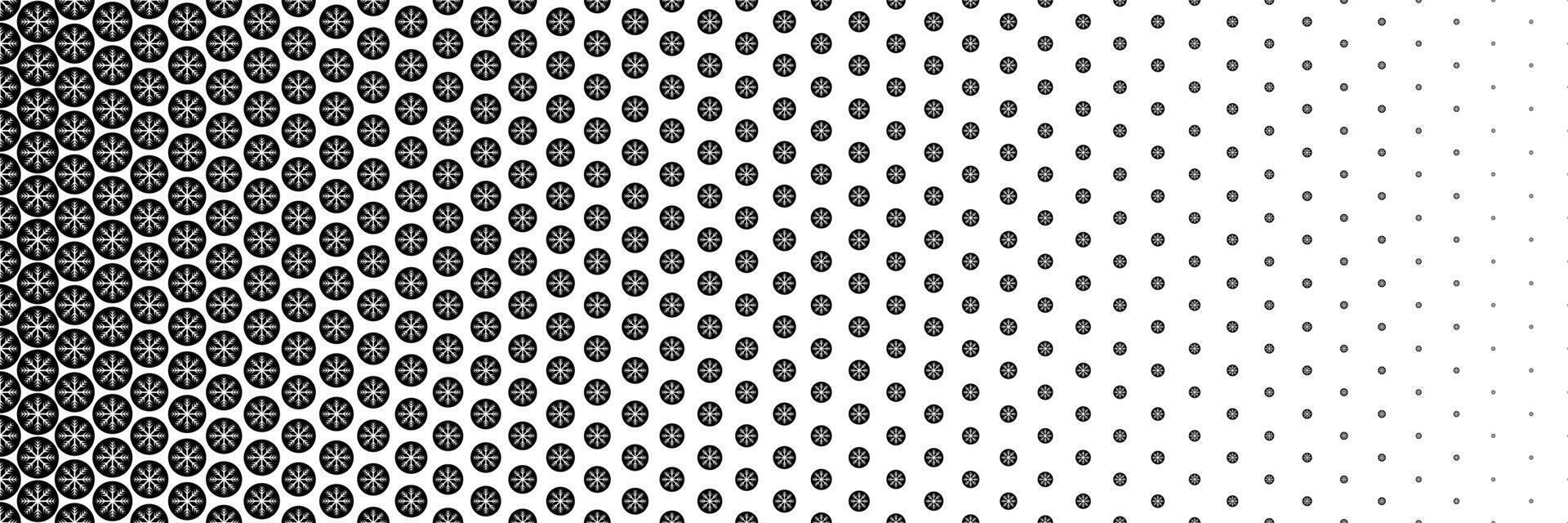 horizontal black halftone of white snow flake in black circle design for pattern and background Pro Vector