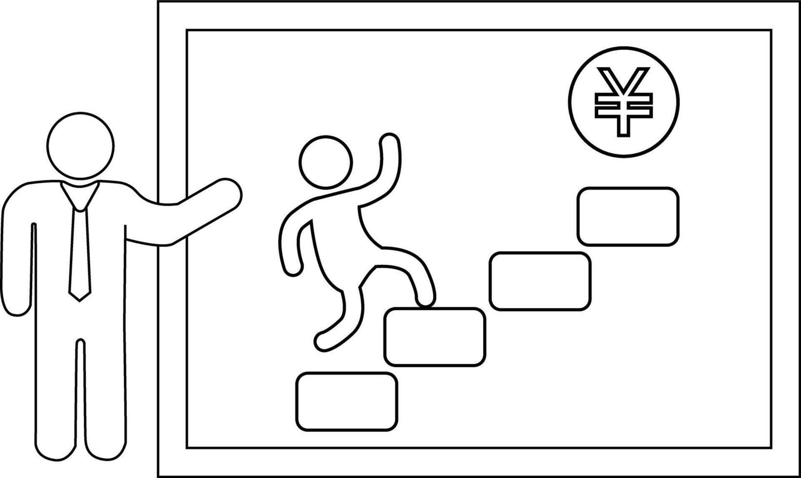 The image shows a person on steps toward a Yen symbol on a chart being presented by a figure Pro Vector