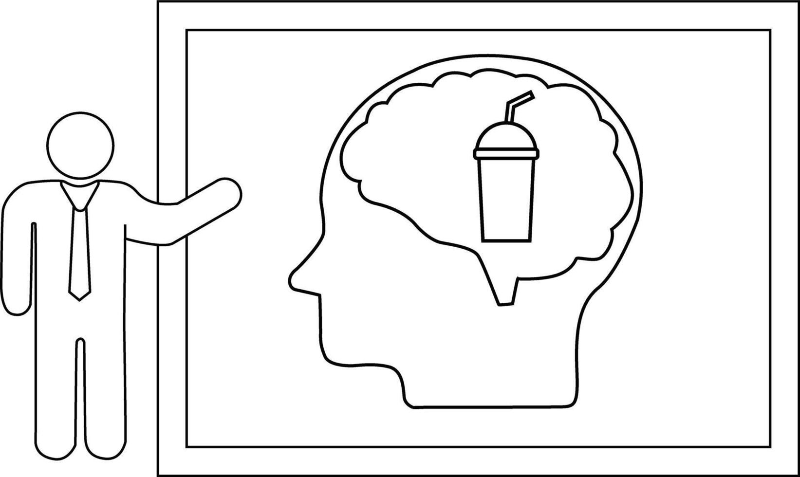 A person points to a brain image containing a cup with a straw within a frame Pro Vector
