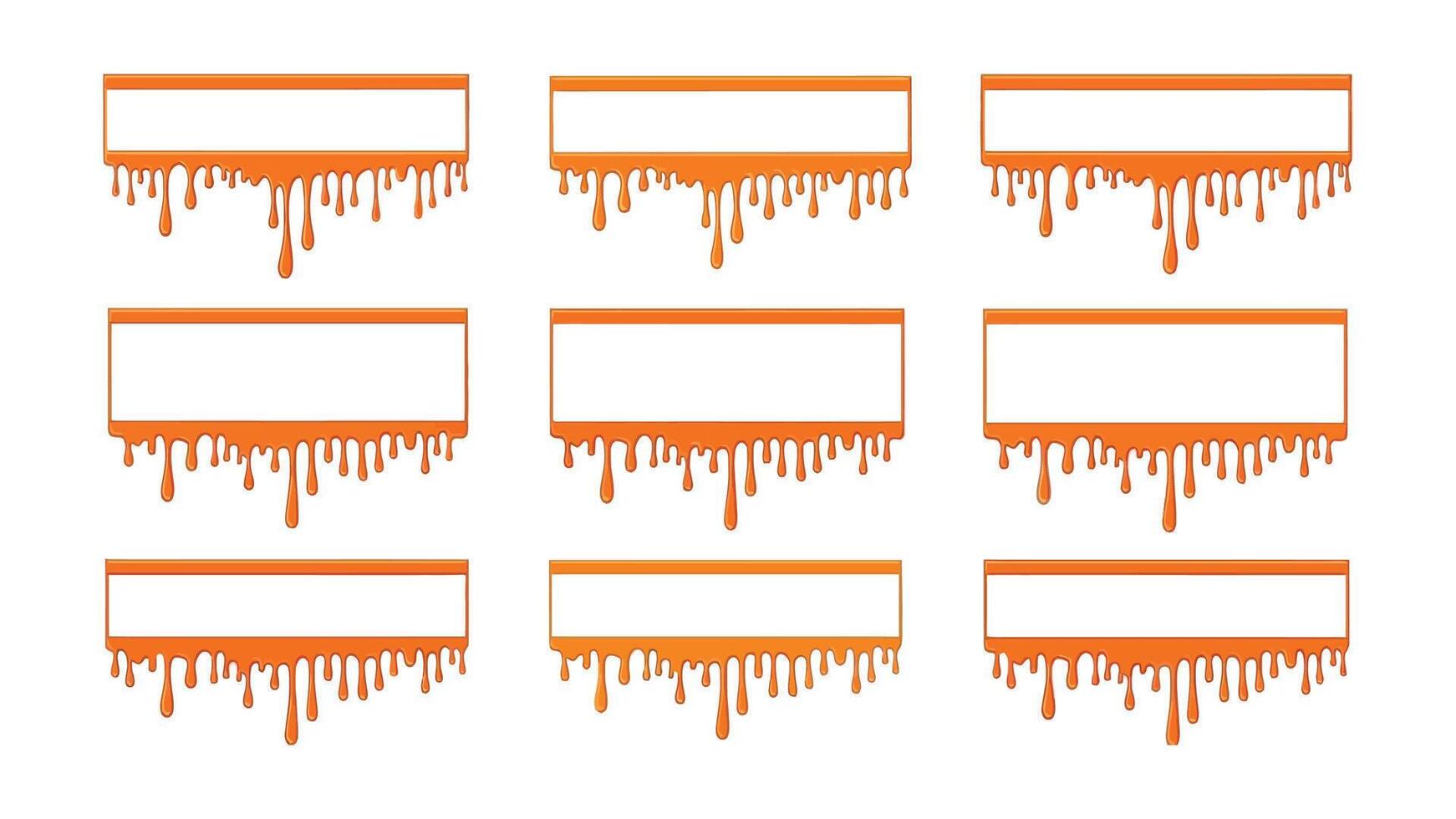 Collection of nine rectangular frames with dripping orange paint effects Pro Vector