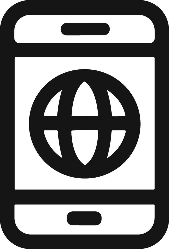 Mobile phone with globe symbol line icon for internet access. Pro Vector
