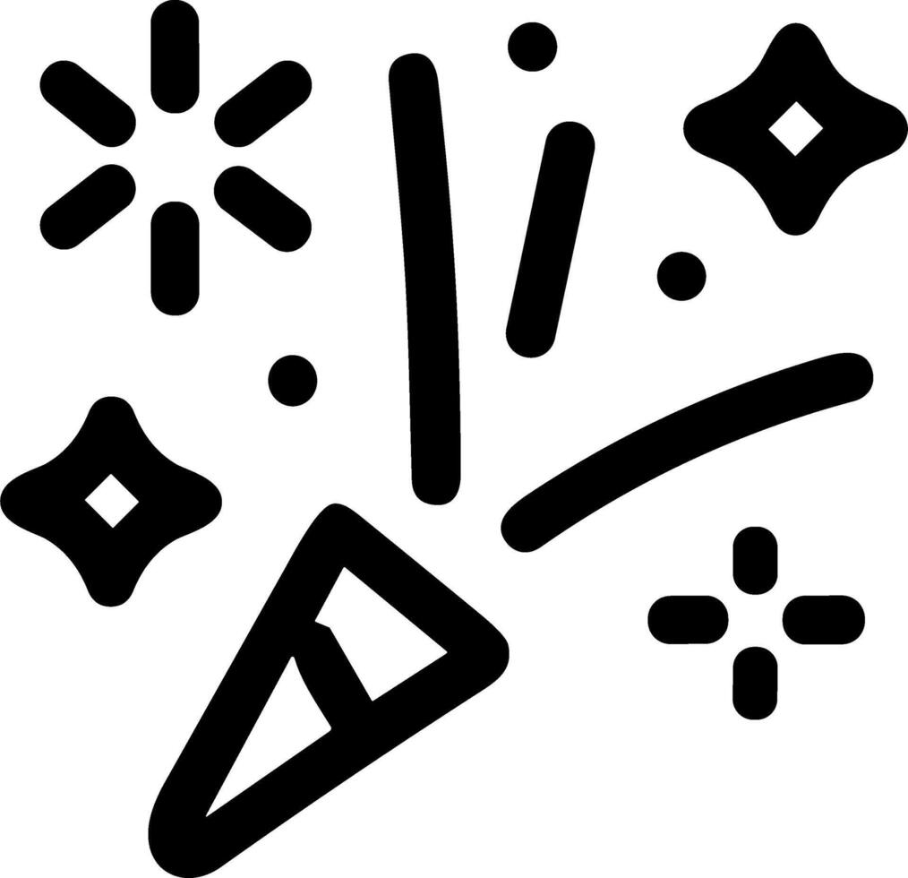 Minimalist party popper icon with exploding confetti and sparkles. Pro Vector