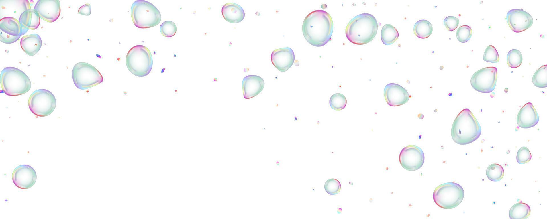 Realistic soap bubbles of round shape different sizes on transparent background. flying liquid bubbles design Pro Vector
