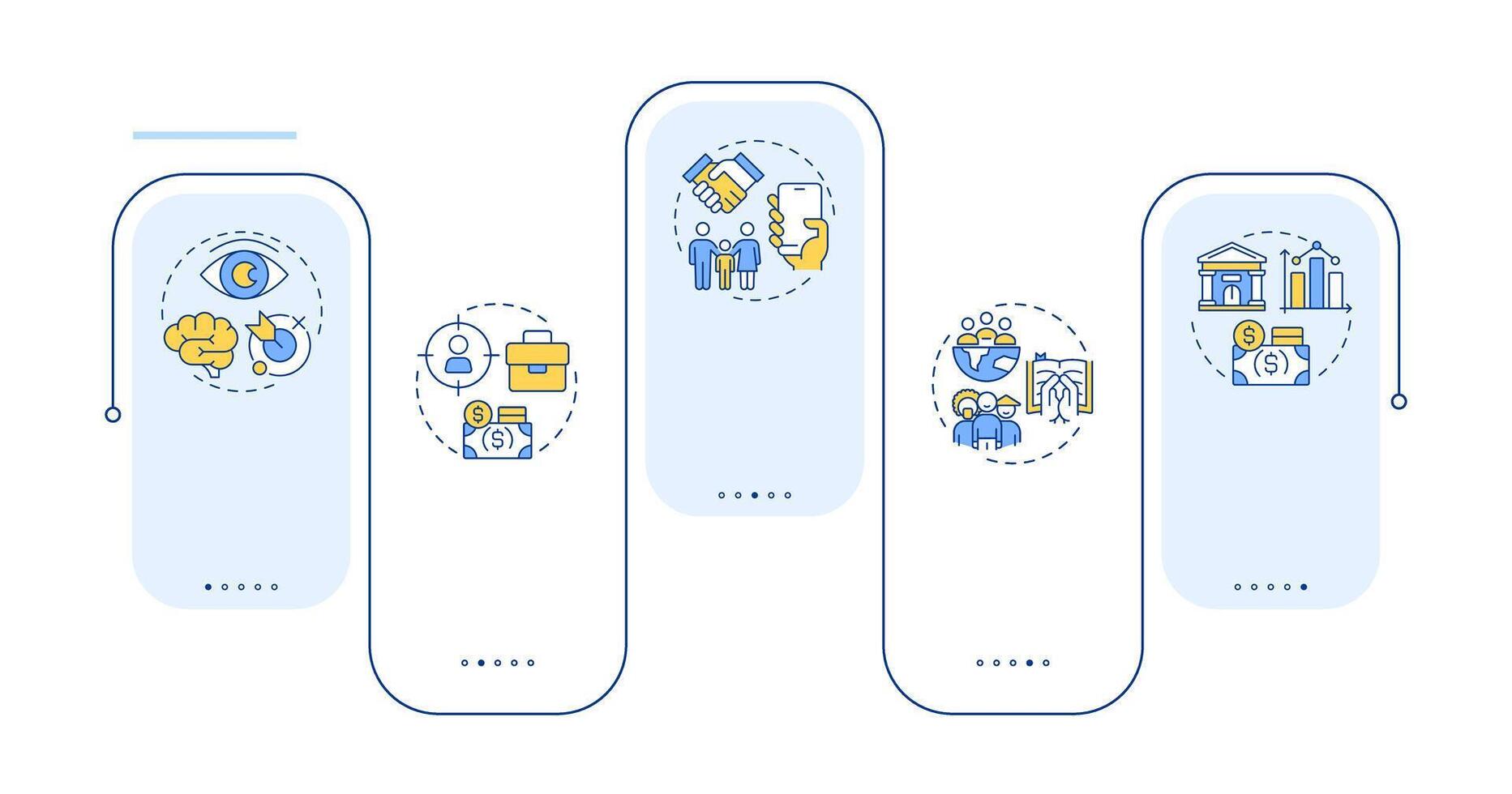 Consumer behavior influence rectangle infographic . Social norms, psychology. Data visualization with 5 steps. Editable rectangular options chart Pro Vector