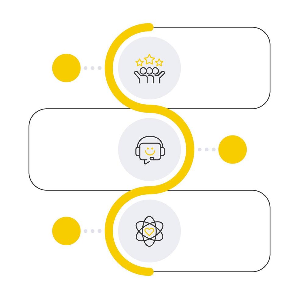 Customer service principles infographic yellow line circles. Support, satisfaction and core values. Editable thin line icons diagram process with 3 steps Pro Vector