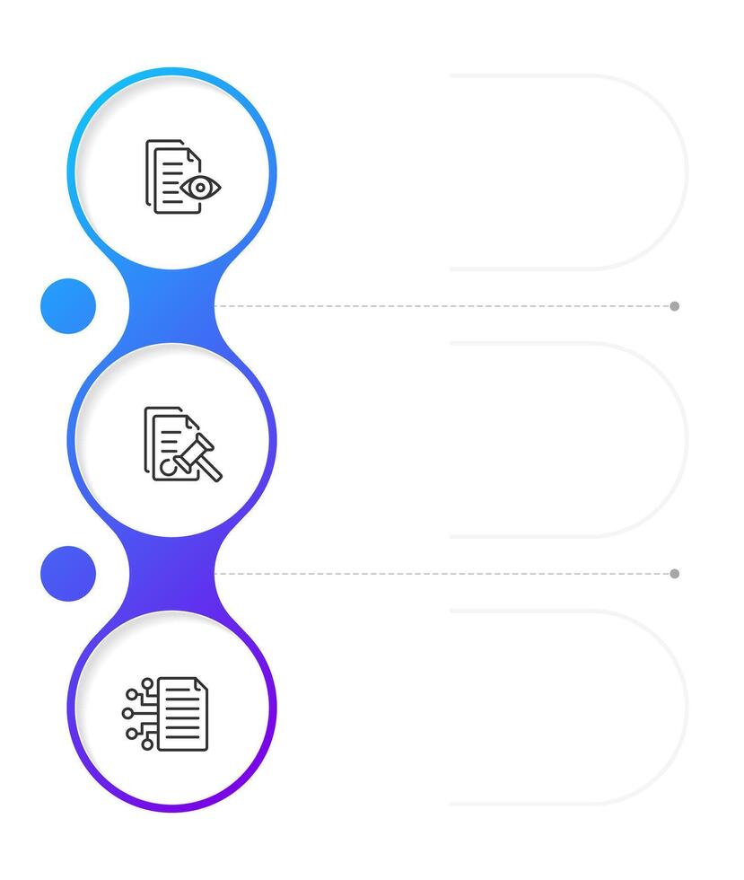 Business processes digitization infographic blue gradient circles. Innovative technology in commerce. Editable thin line icons diagram process with 3 steps Pro Vector