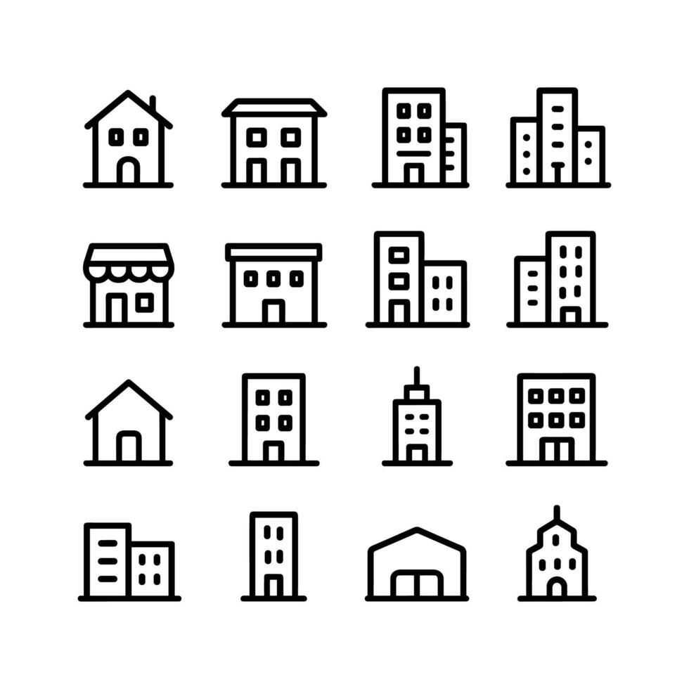 Minimalist Line Art Architecture Building Structure Outline Simple Icon Set Pro Vector