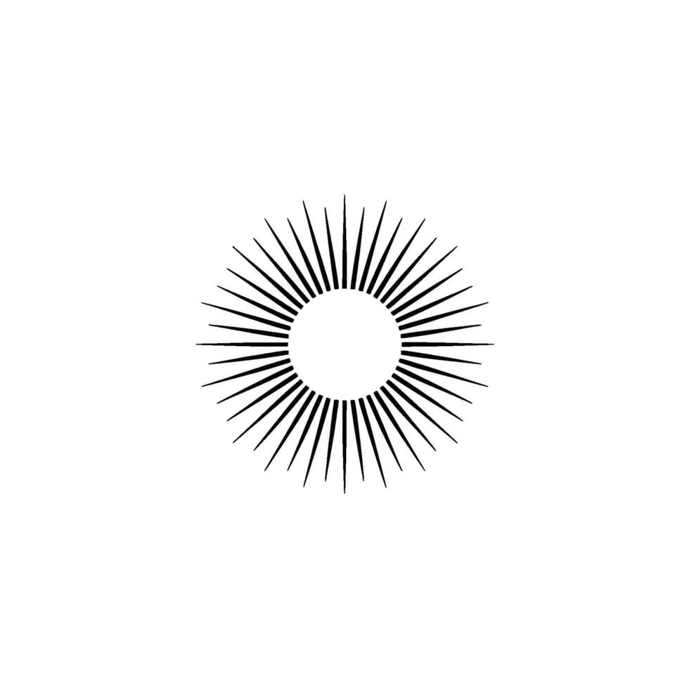 A clean and minimalist representation of a stylized sunburst or starburst element radiating from a central circle Pro Vector